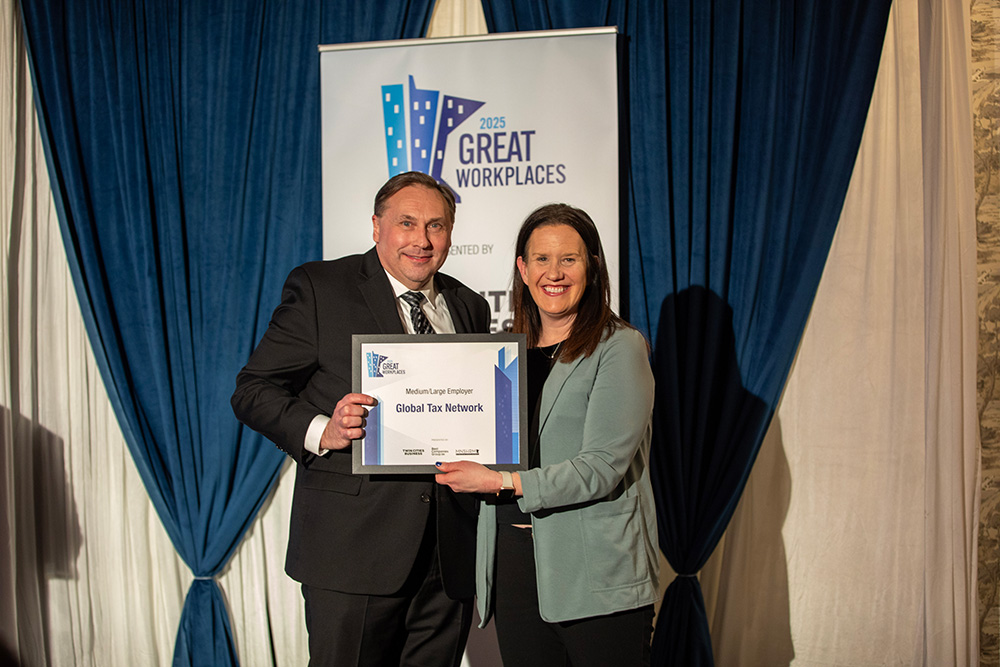 Maple Grove-based Global Tax Network (GTN) is a global tax services firm specializing in tax issues for mobile employees. The firm is proud to offer employees flexible schedules, competitive benefits, and ample growth opportunities, both internally and externally. Employees benefit from internal lunch-and-learns, two weeks of annual technical training, 12 paid holidays, 25 PTO days after one year of employment, flexible and reduced work schedules, summer hours, health and fitness membership reimbursements, and paid parental leave. Interested employees can also transfer to work in other areas of the firm.
