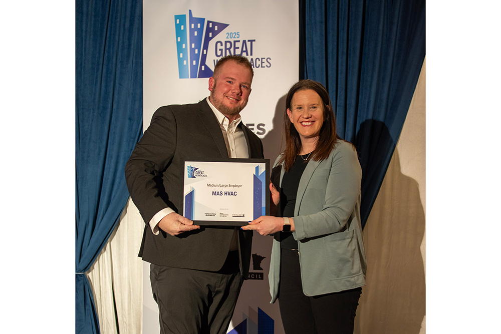 MAS HVAC is a Maple Grove-based HVAC manufacturer that goes above and beyond in its care for its employees. It offers unlimited PTO after one year and encourages each employee to take at least four weeks off per year to recharge. The office is designed with employee comfort in mind, with amenities that include a massage therapist, gym, game room, popcorn machine, and cold brew and nitro coffee on tap. MAS provides comprehensive benefits, like complete coverage of health, vision, dental, and life insurance premiums for full- and part-time employees, as well as bonus incentive programs and continuing education opportunities. Employees and their families also enjoy tickets to Minnesota Twins, Wild, and Vikings games.