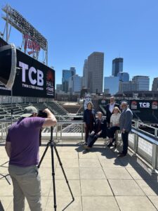 Our team brought five “MVPs” of Minnesota business to Target Field (on a game day no less!) for a photo and video shoot. These are leaders whose schedules would rarely allow such a thing. And yet, there they were in one iconic space, together. Deb Hopp, Dave St. Peter, Jim Snee, Andrea Walsh, and John Koneck side by side under TCB’s banner.