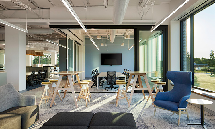 “Our headquarters … serves numerous purposes for a variety of Marvin teams,” Marvin says. “Here we have everything from individual workspaces to expansive training facilities with a wide range of meeting spaces throughout to serve groups of two to three to groups of 200.”