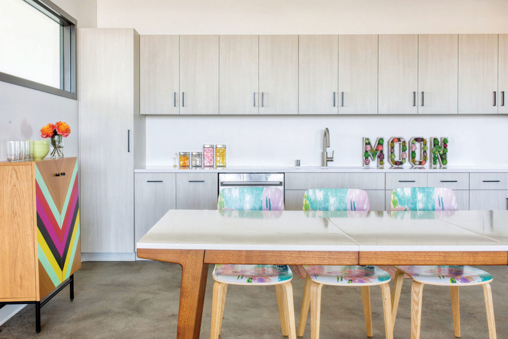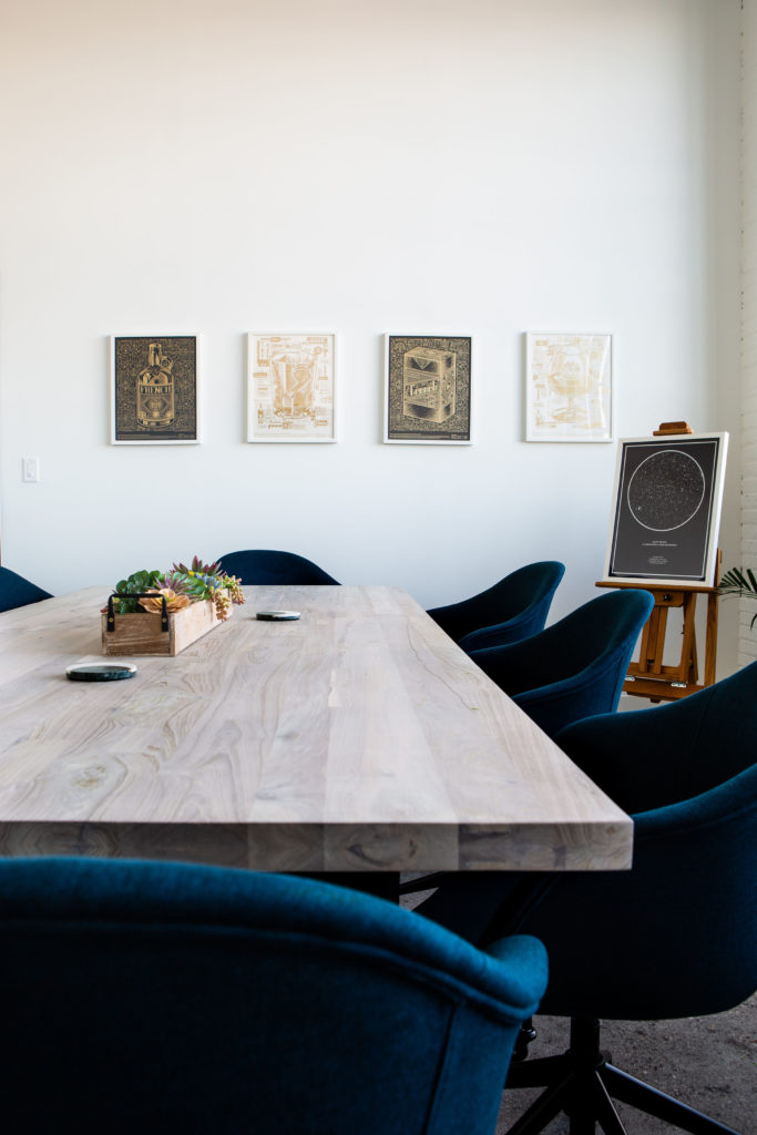 When Eight Moon owner, president, and creative director Megan Junius was designing the new office for her St. Paul creative design and marketing firm, she had one primary goal: make the office a creative haven. Formerly called Peter Hill Design, Junius rebranded the firm as Eight Moon in 2019, a nod to the final phase of the lunar cycle, which according to lore, is when human creativity is at its pinnacle. And since creative innovation has been the company’s core tenet since its 1994 founding, Junius decided it was time to have an office that reflected the brand, its work, and of course, its new name. Junius designed the space herself, with guidance from Shelly Peschel of Melody Hill Design. The 2,800-square-foot, light-washed space in the Vandalia Tower building merges industrial design with contemporary furnishings and pops of color. And the airy, open space promotes collaboration, says Junius. Plus, it’s situated in what’s called the Creative Enterprise Zone, a neighborhood between downtown St. Paul and Minneapolis established in 2013 as a place for artists, makers, and entrepreneurs to come together to create and innovate. The perfect place for more creative juices to flow.