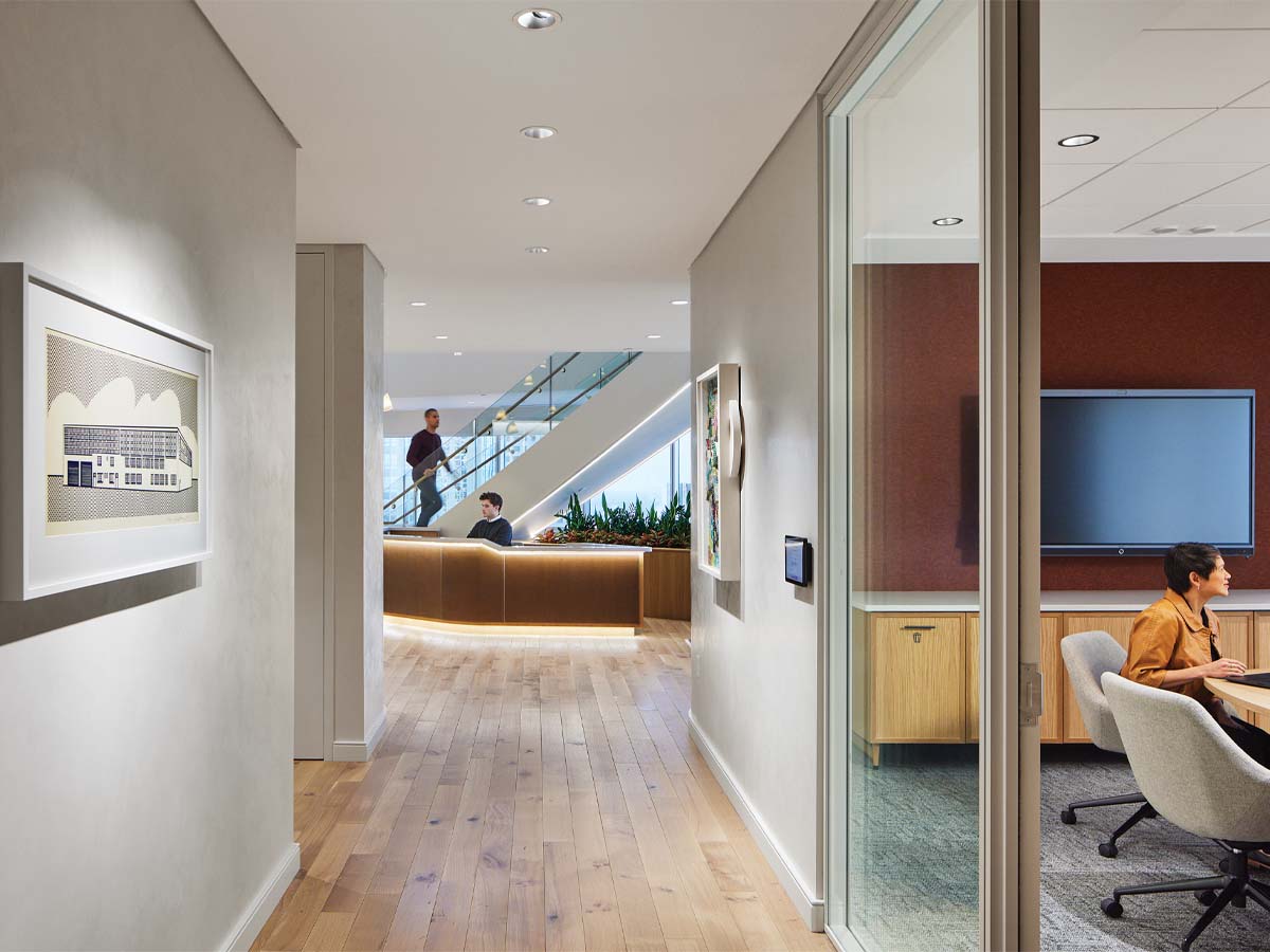 In anticipation of the move to Capella, the firm—one of Minnesota’s largest—worked with Perkins&Will to design the new office space with art as the centerpiece; a major design principle was to think about how someone experiences the art as they move through the work environment.