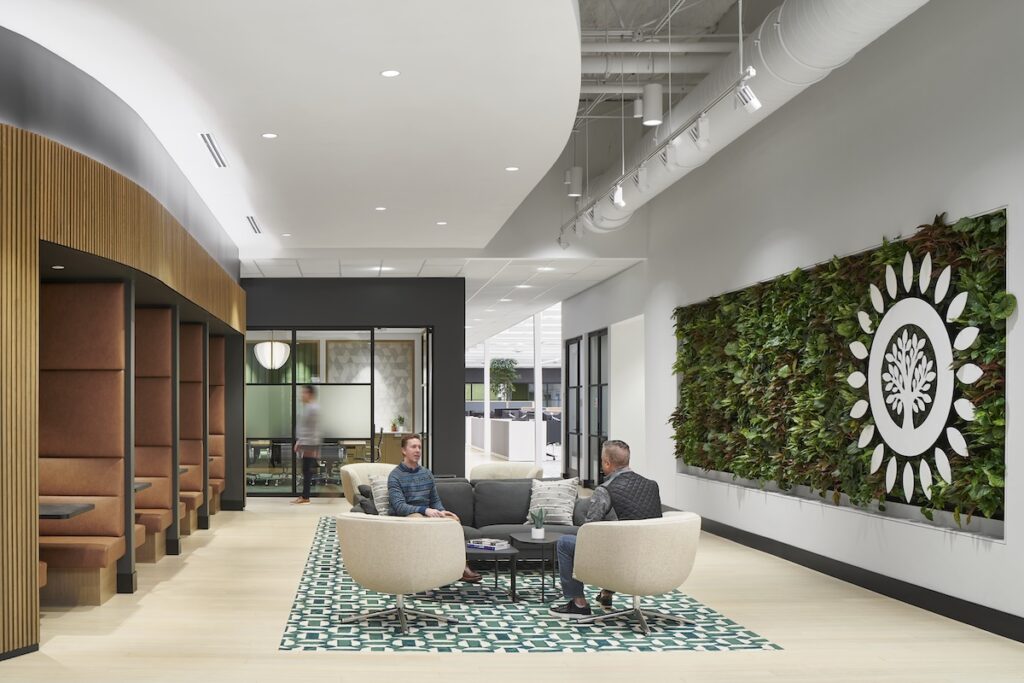 “The space creates a wonderful vibe,” says Stacy Seidel, head of sustainability. “People want to get together and collaborate. It is designed to help people feel good.”