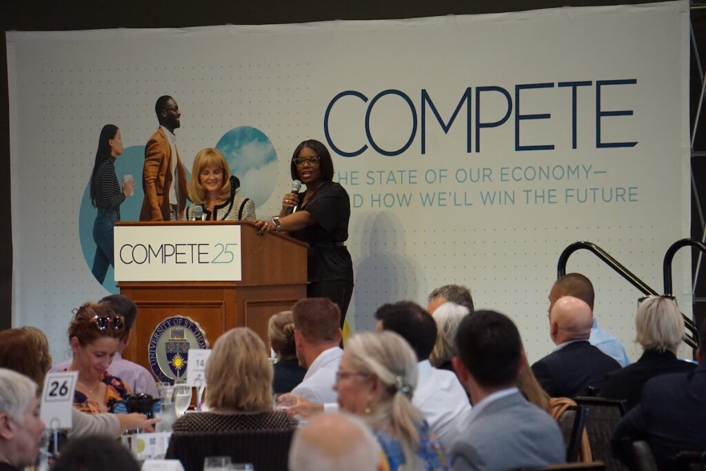 Shawntera Hardy, former commissioner of the Minnesota Department of Employment and Economic Development, stressed that the economy’s condition isn’t simply something that’s a concern of businesses. “Whether you work for local government, a private manufacturing company, a housing nonprofit, or a university, you are part of this economy,” said Hardy, who now is CEO of Amethyst Advisory Group.