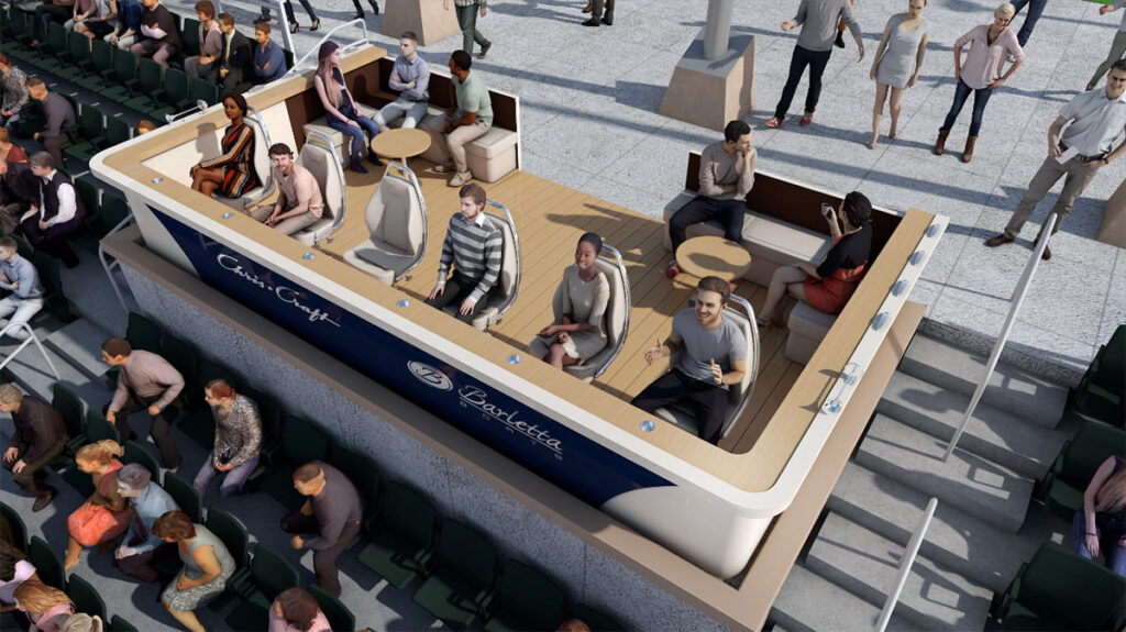 “Not only is this a unique setting—in a boat—it also offers the only place in the ballpark for a smaller group,” Hodson said. Suites have a 16-person minimum.