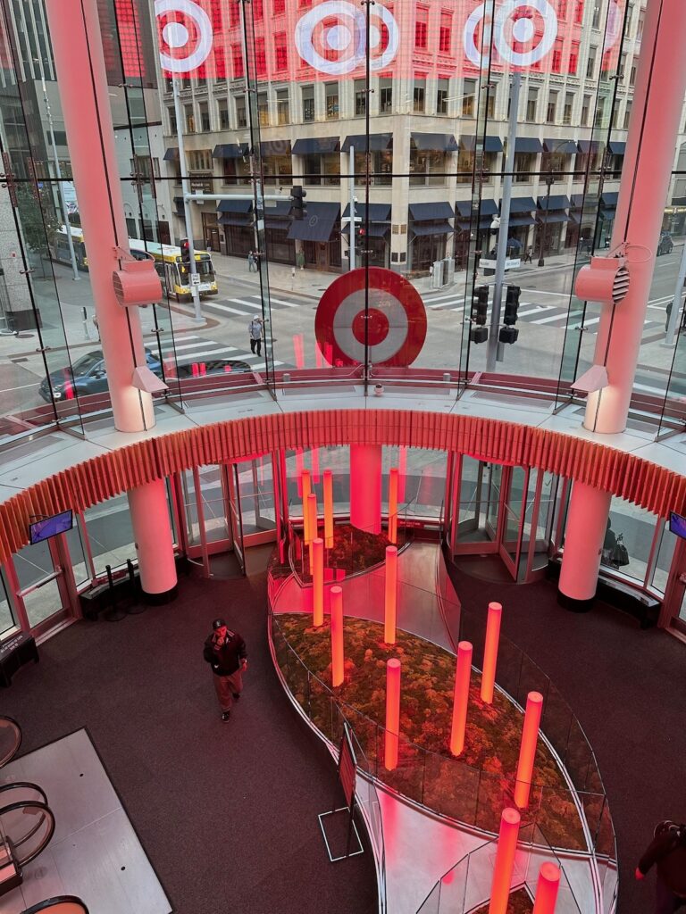 It’s not the only encouraging sign at 9th and Nicollet. Kiddie corner from Zelo, Target recently extended its hours to 8 p.m. Monday through Saturday (7 p.m. Sunday), which is two hours later than it had been operating since the pandemic. Target’s half moon of glass doors, which had been partially boarded up due to safety concerns on Nicollet, are once again open with a new light sculpture in the atrium that adds vibrancy, but, perhaps more intentionally, also cuts through the center of the space to discourage loitering.